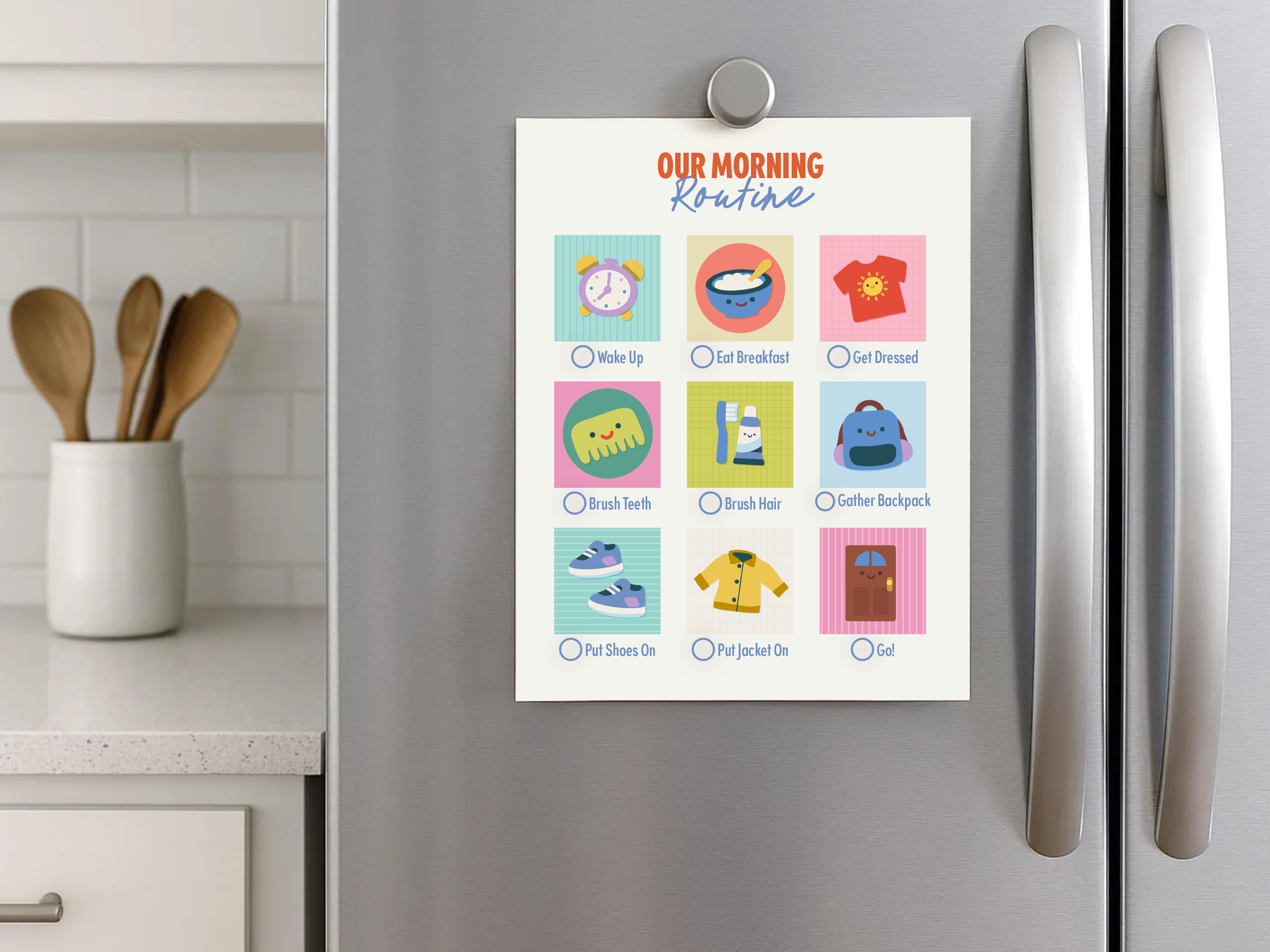 For me, the stress of getting out the door in the morning rarely comes from one big thing, but rather a handful of small, moments that pile on. Deciding what to eat, reminding everyone what comes next, negotiating how much time is left.