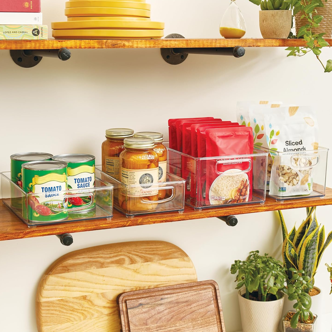 These clear bins create an obvious “grab and go” zone in the pantry or fridge. When snacks and breakfast options are visible and consistent, mornings move faster with fewer questions.
